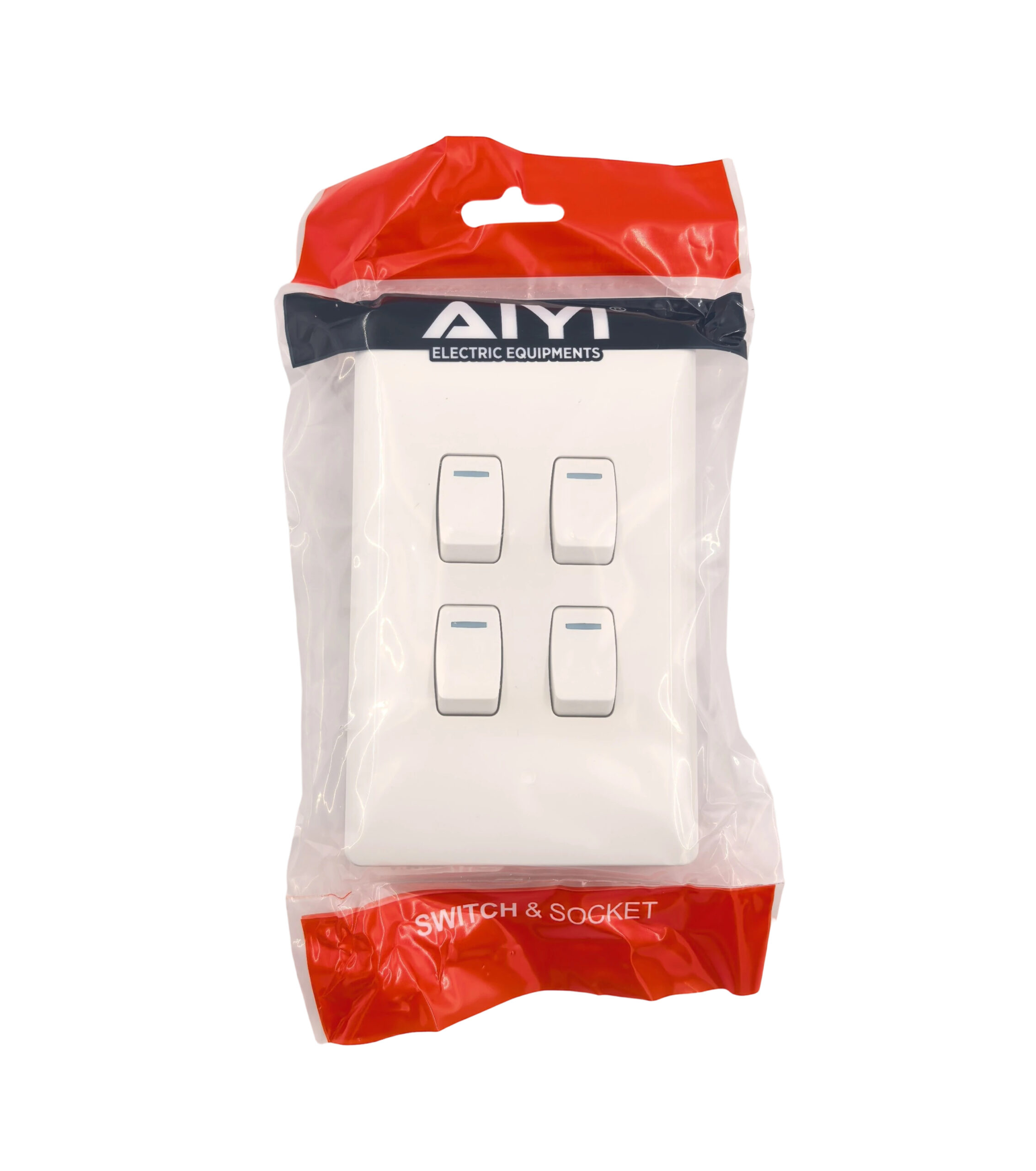 Upgrade multiple rooms at once with the AIYI 4-Gang 1-Way Wall Light Switch (2×4 Size) – 10 Pack.