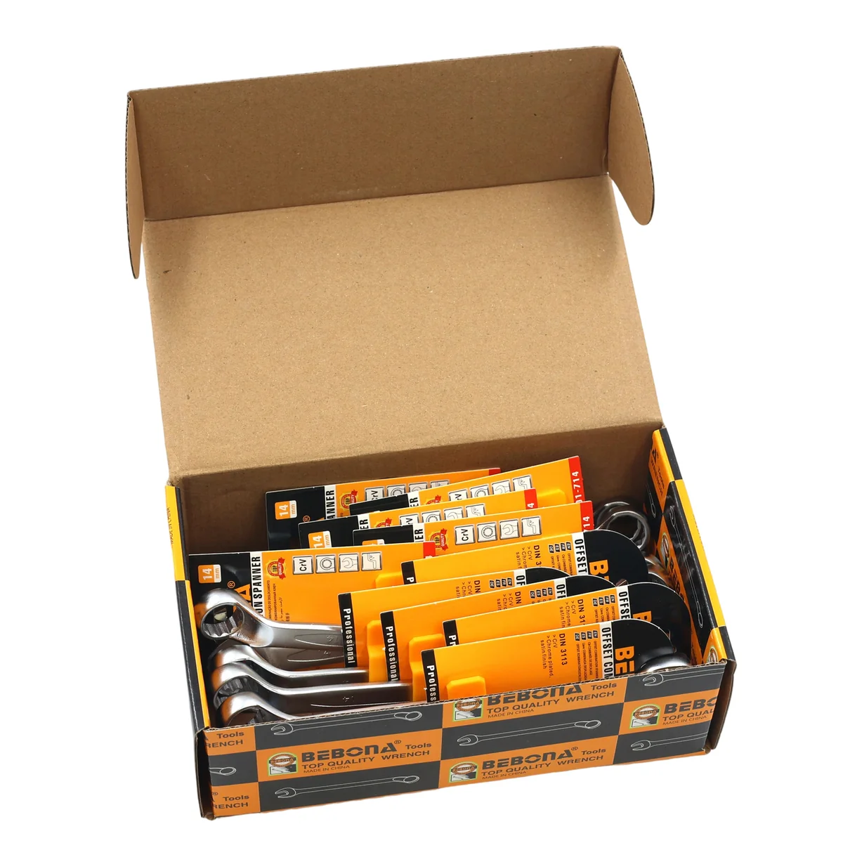The offset design allows easier access to fasteners that are positioned below the surface or in confined areas, while the combination head provides both an open-end and ring-end solution in one practical tool. The ring end ensures firm grip and reduced slippage, while the open end allows quick positioning and adjustments.