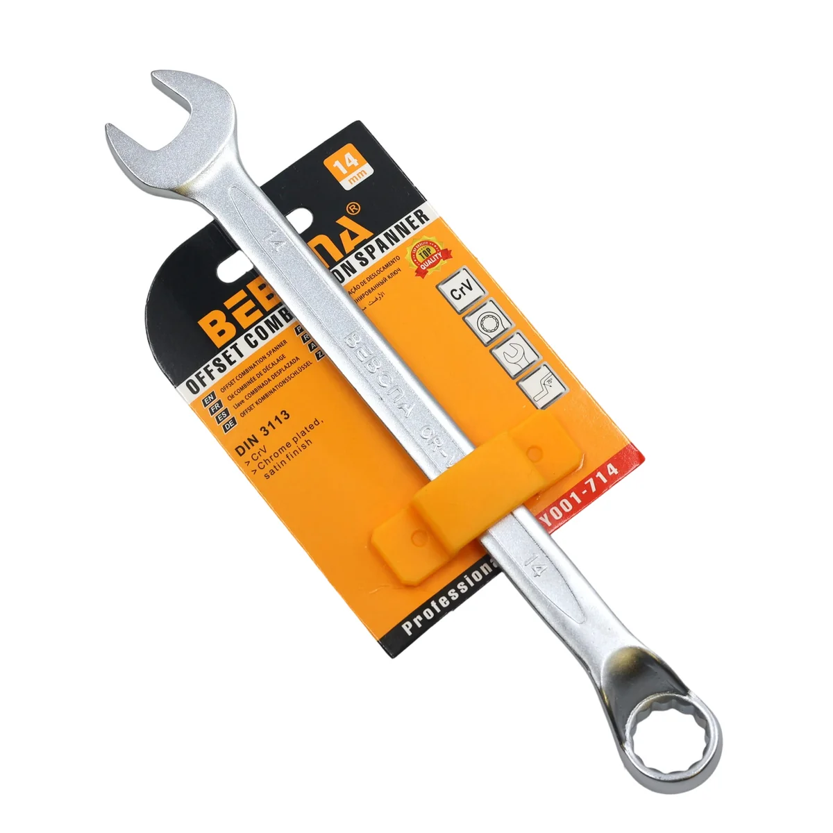 This professional offset combination spanner is designed for strength, durability and improved access in tight or recessed spaces. Manufactured from high-quality chrome vanadium (CR-V) steel, it delivers reliable torque performance for automotive repairs, mechanical work, construction projects and general household maintenance.