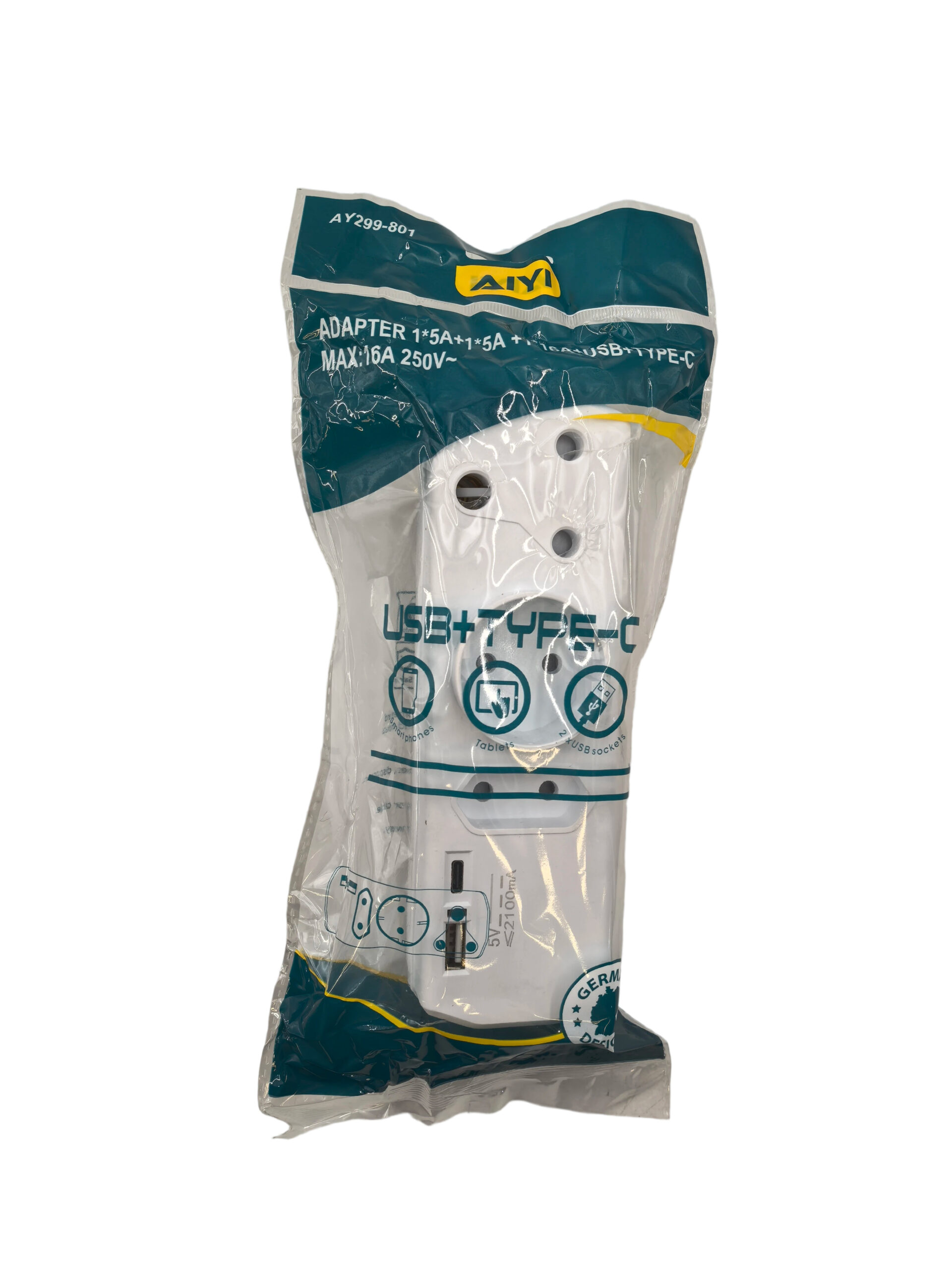 1*5A+1*5A EU+1*16A+2USB MULTIPLUG ADAPTER AY299-801
