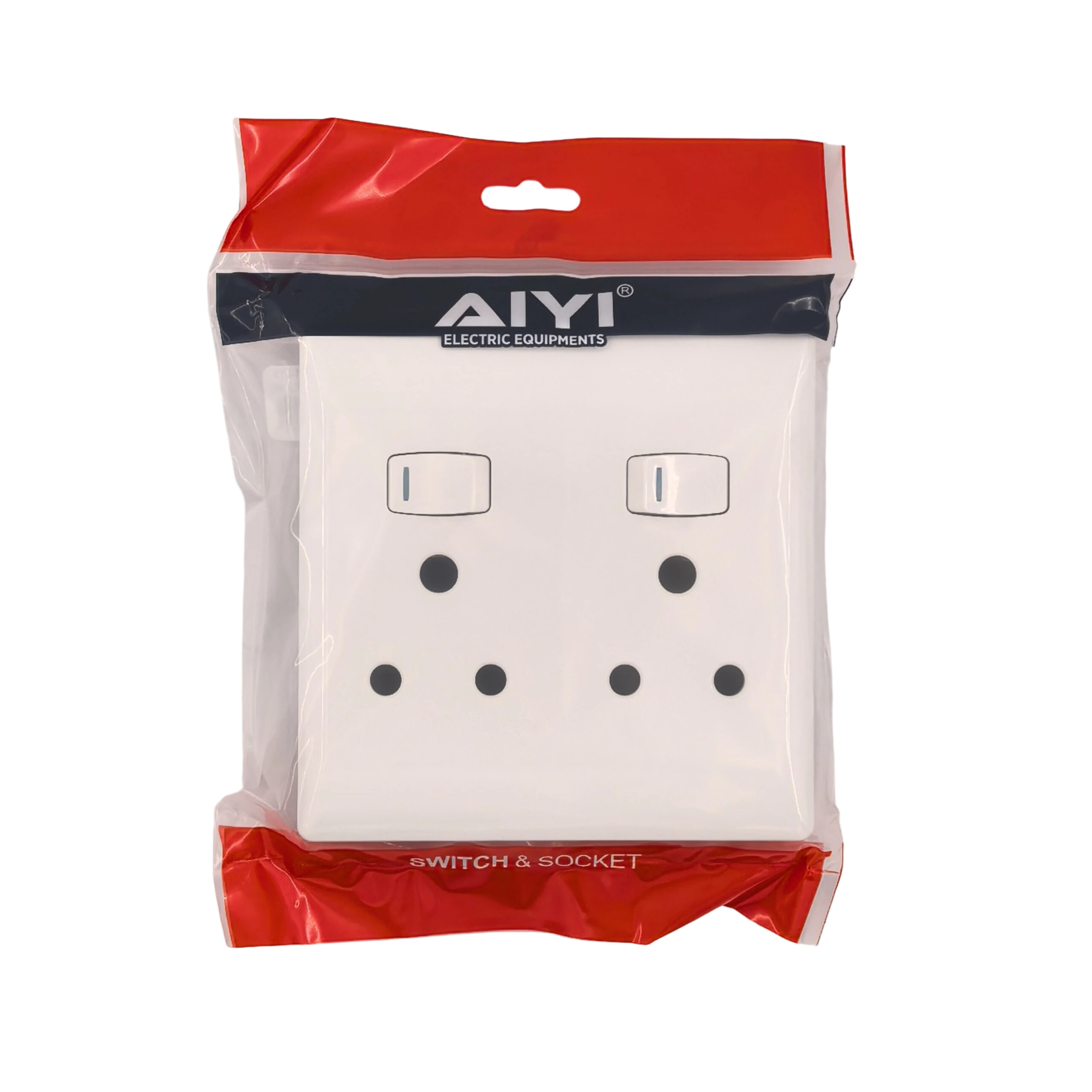 Upgrade your home, office, or commercial space with the AIYI 4×4 Double 3-Pin Wall Socket with Dual Switches. Featuring two individually controlled 3-pin outlets, this unit provides expanded power access while maintaining excellent safety and durability.