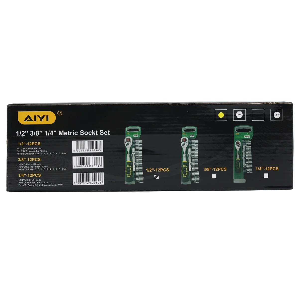 The AIYI 1/2″ Drive Socket Set is designed for heavier-duty mechanical work, automotive repairs, and demanding DIY tasks. With a larger drive size and robust construction, this set is ideal for applications requiring higher torque and strength.