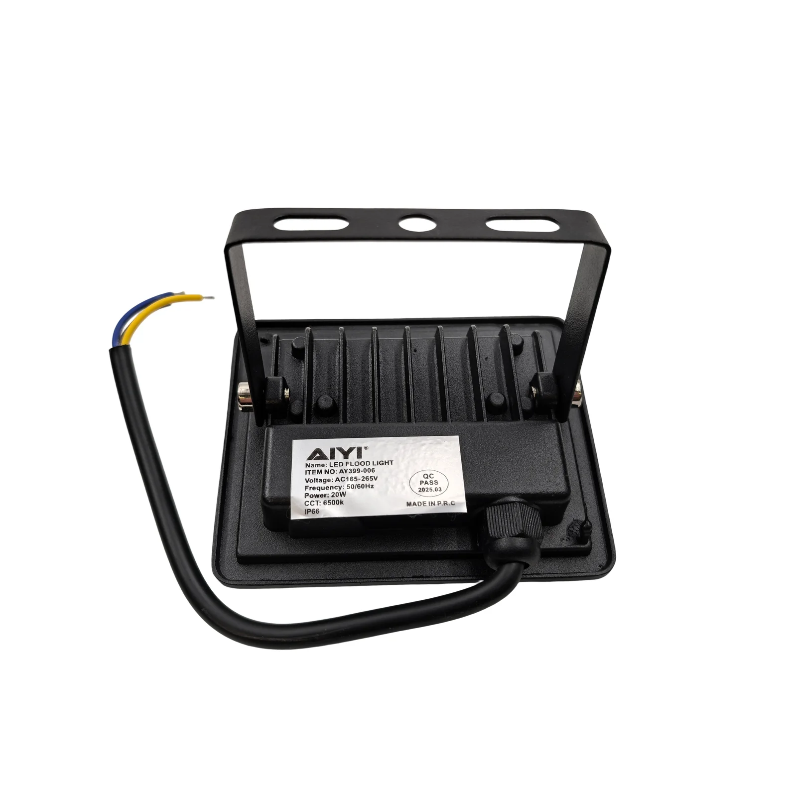 The AIYI 20 W Mini LED Flood Light is a slim yet powerful lighting solution for small outdoor spaces. Fitted with 24 high-efficiency LEDs, it produces up to 2000 lumens of crisp cool white 6500 K light (CRI ≥ 80), ideal for patios, gates, pathways, signage, or compact security installations.