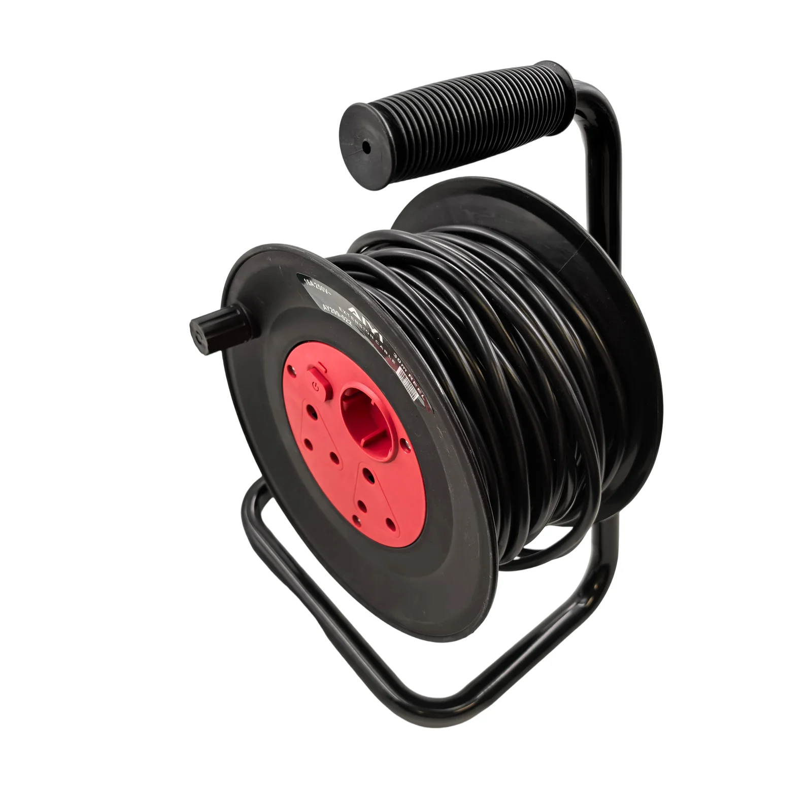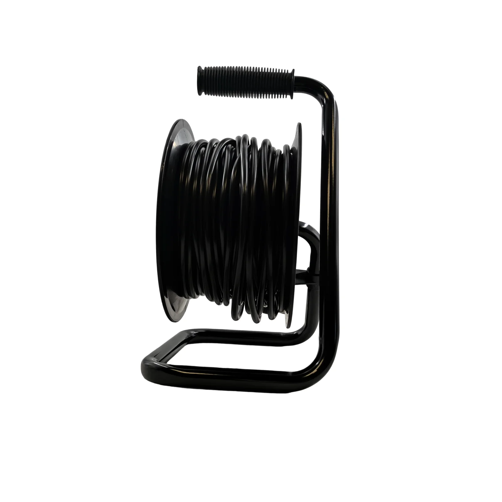 This 30m extension reel is perfect for medium-distance power supply in the home, workshop, or garden. Built with a VDE-certified H05VV-F 3G1.5 mm² cable, it ensures safe and reliable performance for a wide range of electrical equipment. The sturdy metal frame and ergonomic handle make winding and transporting the reel easy and convenient.