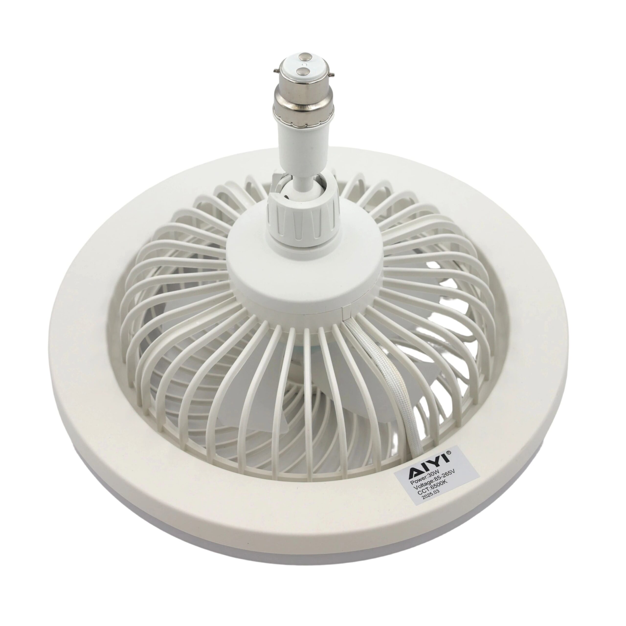 The AIYI 30W LED Ceiling Fan Light is a smart, space-saving solution that combines bright illumination and effective air circulation in a single ceiling fixture. Designed with a B22 bayonet fitting, it installs easily into standard light sockets without the need for rewiring or additional ceiling brackets.