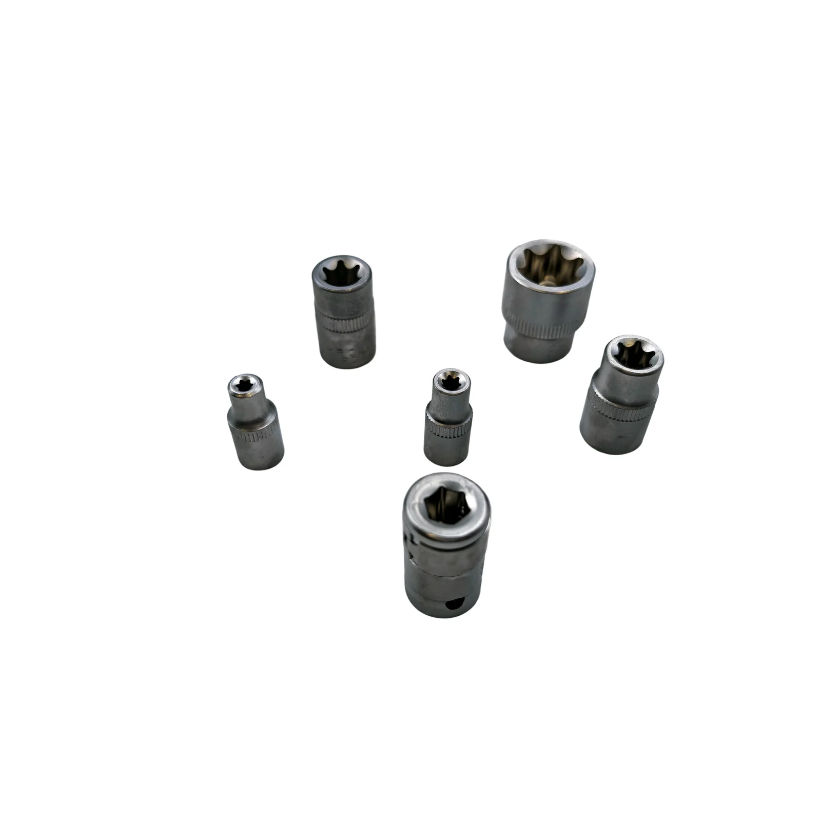 Includes TX10–TX60 Torx bit sockets and E4–E20 external star sockets