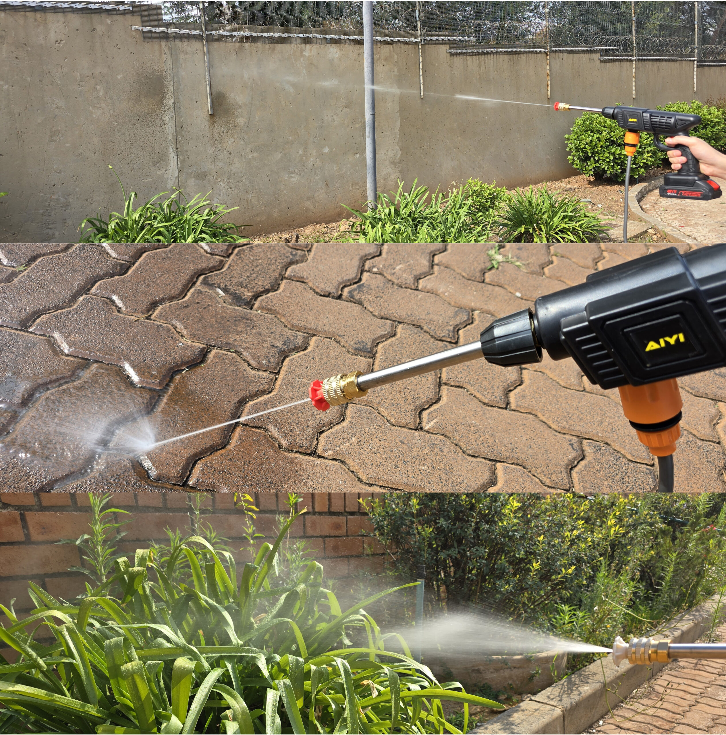 The AIYI Cordless High Pressure Washer Kit is a powerful, portable cleaning tool designed for fast, convenient outdoor washing. Powered by a heavy-duty lithium battery, this unit delivers strong water pressure without the limitations of power cords or water taps. Simply drop the hose into a bucket, pool, tank, or any water source and start cleaning instantly.
