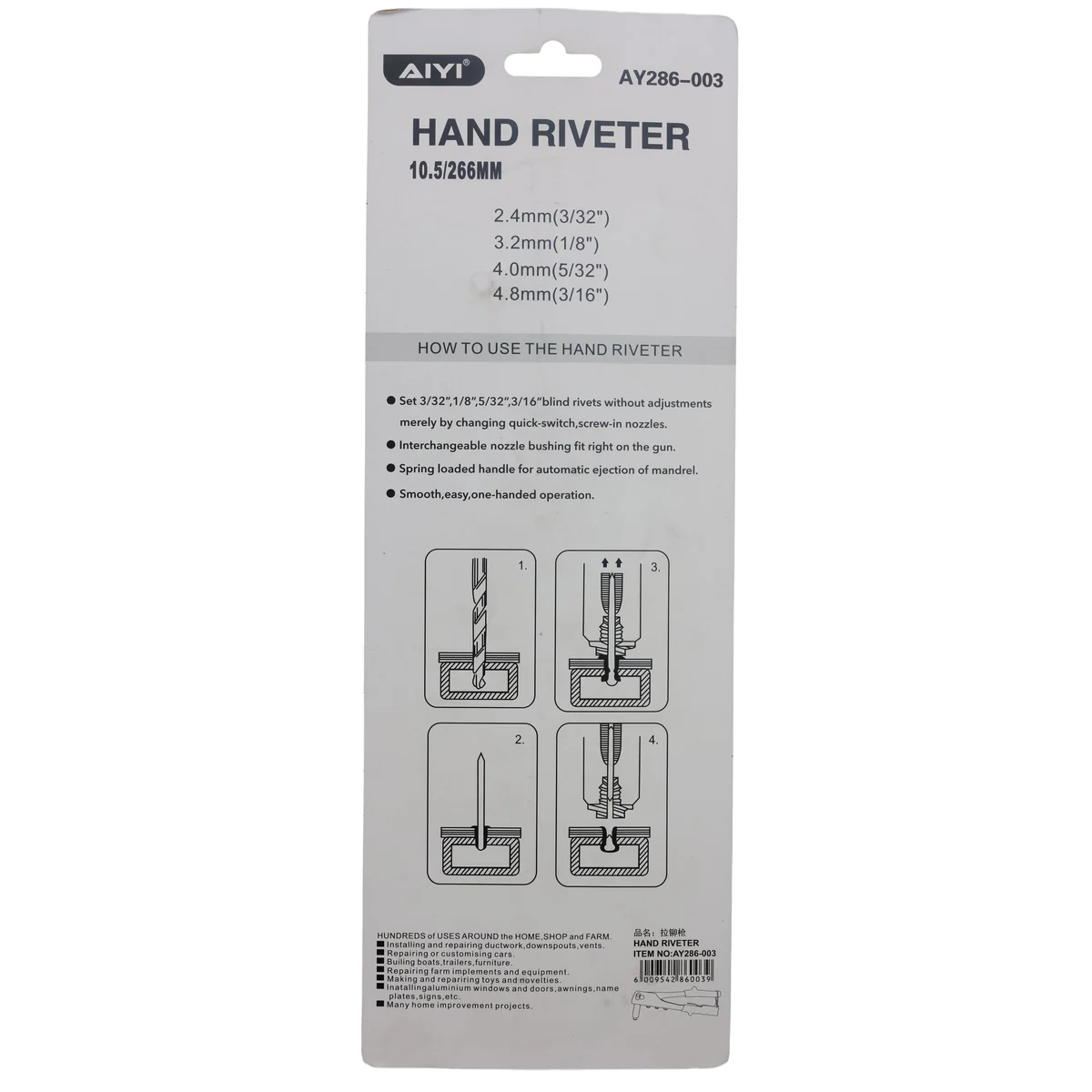 AIYI Hand riveter 10.5″/266mm AY286-003