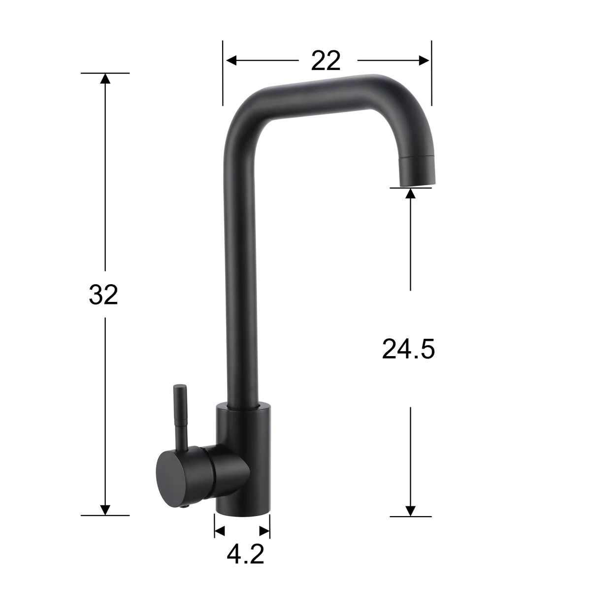 This modern kitchen tap features a high-arching swivel spout that provides excellent clearance for rinsing and filling large pots. The single lever handle offers smooth and precise control of water temperature and flow. With its sleek matte black finish, it adds a bold, contemporary look while resisting fingerprints and water stains. Ideal for any modern kitchen setup.