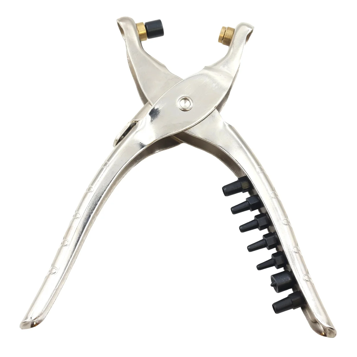Multiple interchangeable punch tips for various hole sizes.