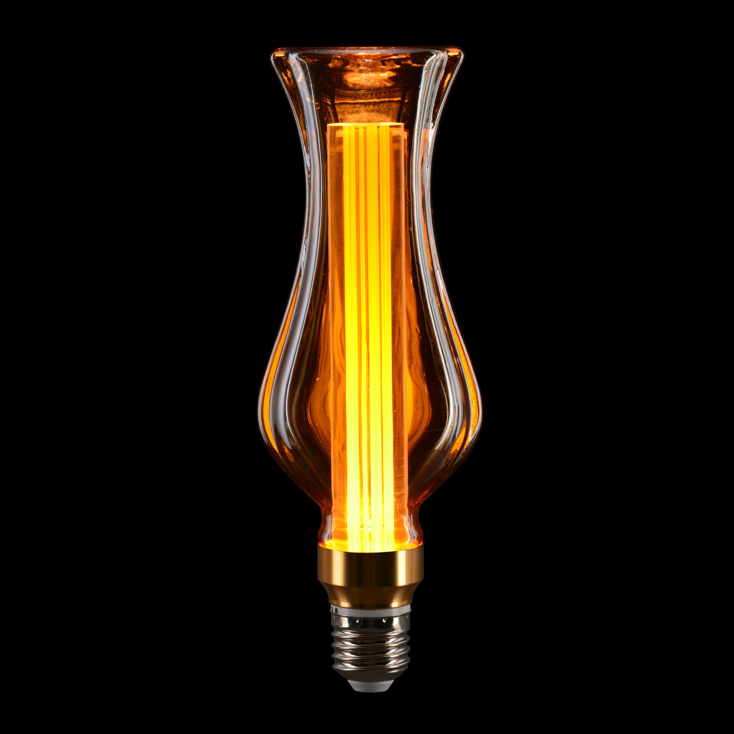 This LED Decorative Filament Bulb (DT68-200) produces an extra warm 2000K light, creating a rich amber glow that adds warmth and atmosphere to any space. Its elegant sculpted glass shape makes it ideal for decorative applications where the bulb itself is intended to be seen.