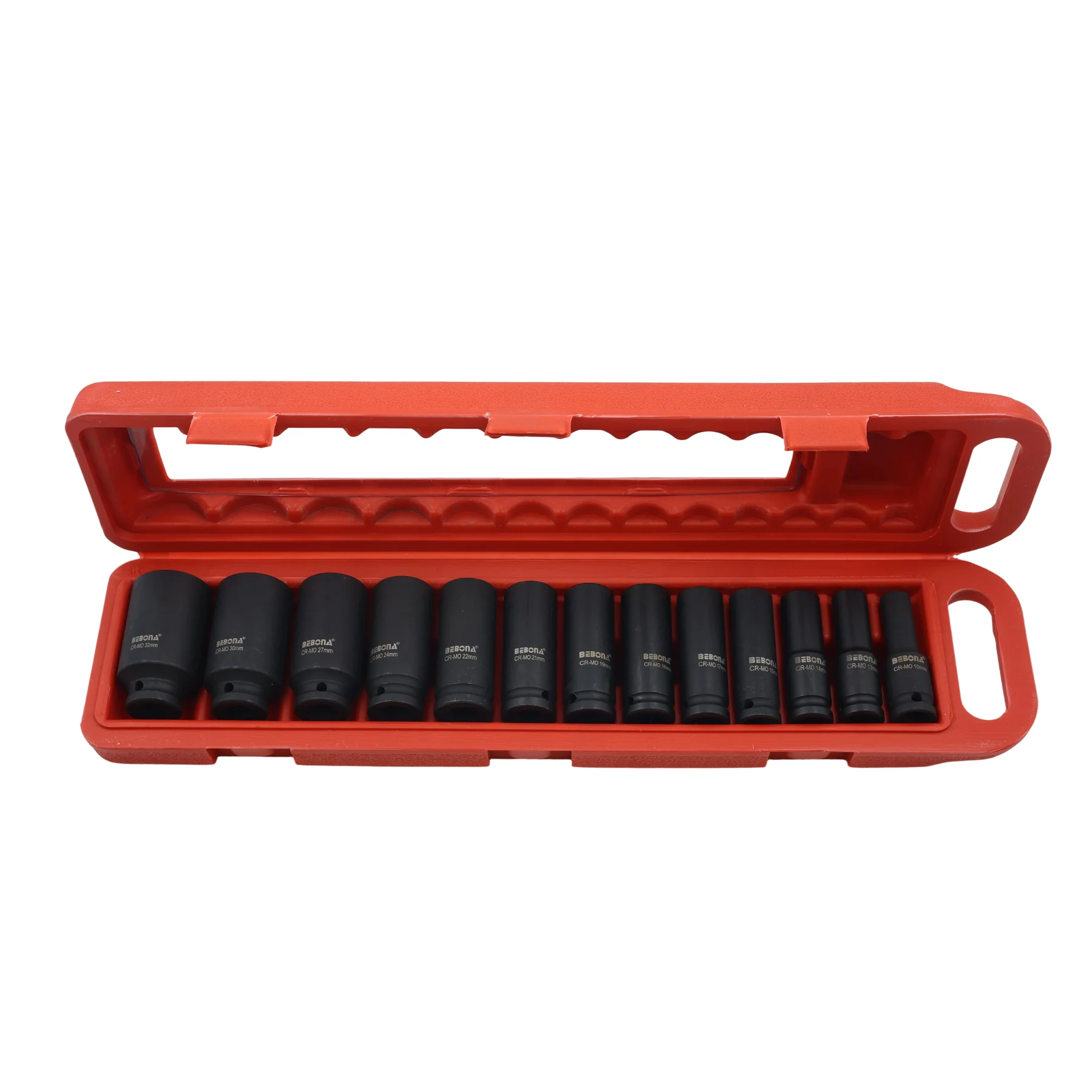 This comprehensive set covers a wide range of metric sizes from 10mm to 32mm, giving you maximum versatility whether you’re working on engine repairs, suspension components, or heavy machinery. Each socket is clearly laser-etched for quick identification, while the durable red plastic carry case keeps everything neatly stored and easy to transport.